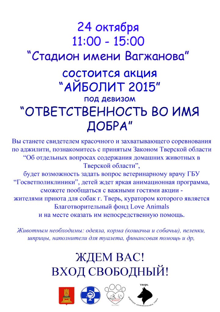 А именно Вы увидите захватывающее соревнование по аджилити (кубок Тверской области), познакомитесь более подробно с принятым законом Тверской области «Об отдельных вопросах содержания домашних животных» от 15.07.2015 № 72-ЗО при поддержке Правительства Тверской области, будет организована рабочая площадка государственного бюджетного учреждения ветеринарии «Тверская городская ветеринарная поликлиника»,